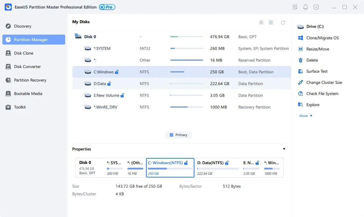 EaseUS Partition Master, sabit disk bölümlerini yönetmek, optimize etmek ve kurtarmak için kullanılan kapsamlı bir yazılımdır. Hem yeni başlayanlar hem de ileri düzey kullanıcılar için uygun, kullanıcı dostu bir arayüze sahiptir.