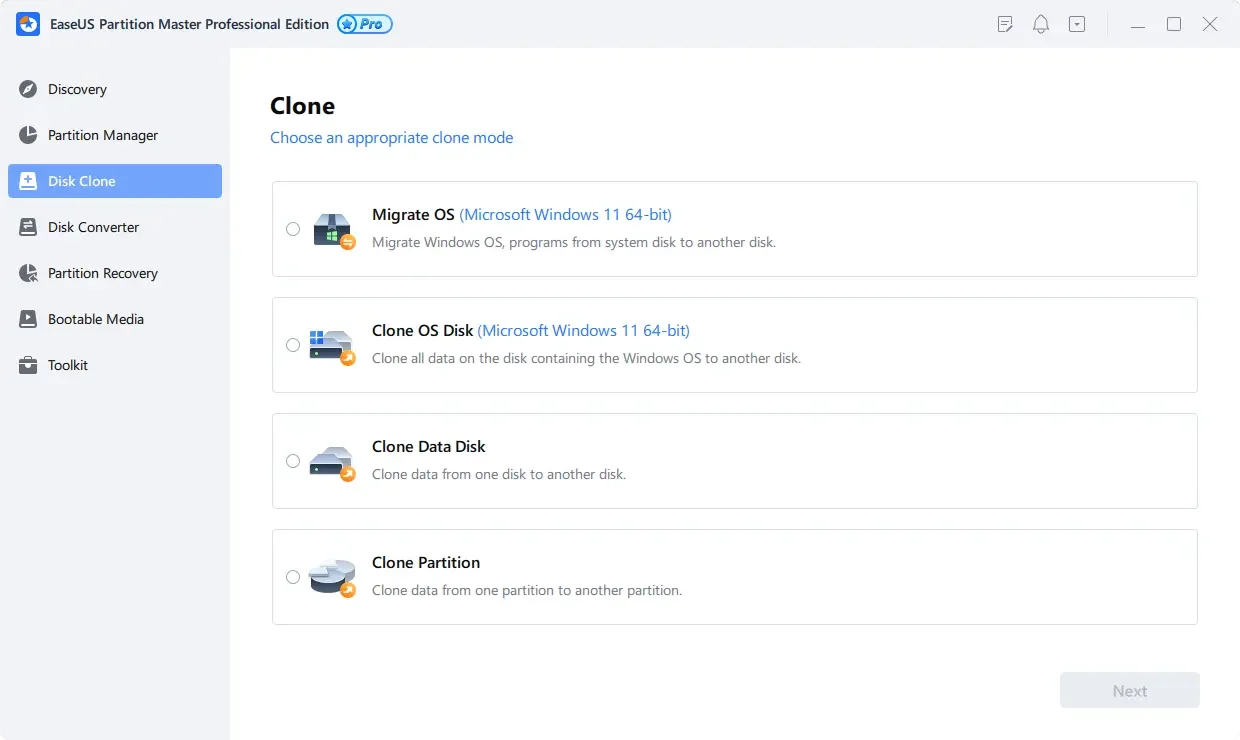 Sabit diskleri veya bölümleri klonlama (HDD'den SSD'ye veya SSD'den HDD'ye).